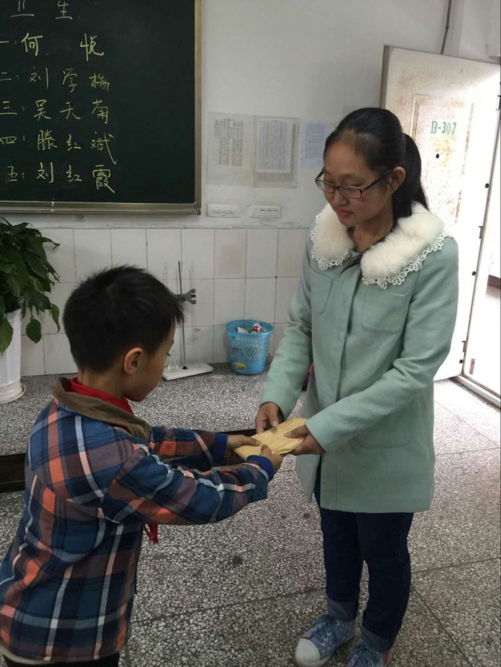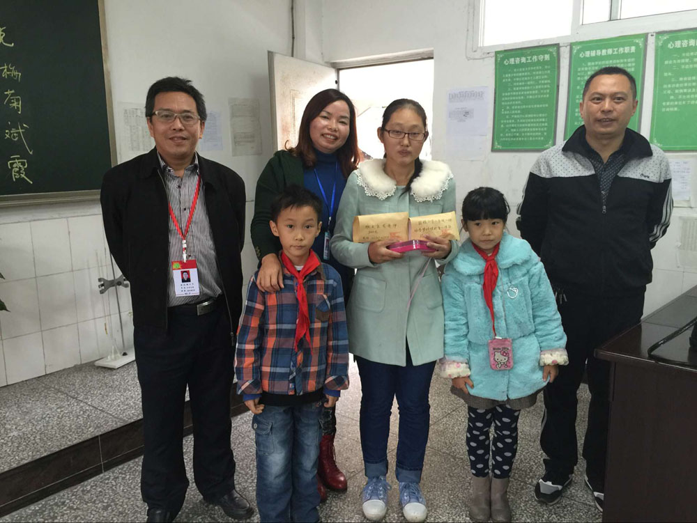 原來,龍霞燕老師了解到南溪一中李夢同學(xué)家庭貧困、學(xué)習(xí)刻苦、成績優(yōu)秀,為她的執(zhí)著學(xué)習(xí)精神深深感動(dòng)。在給學(xué)生們宣傳了李夢同學(xué)的事跡后,所任教班級(jí)的同學(xué)們也積極支持,紛紛捐出自己的零花錢。在教師辦公室,兩名小學(xué)生代表為李夢同學(xué)獻(xiàn)上他們的愛心,一盒心形巧克力和同學(xué)們捐獻(xiàn)的愛心善款。李夢同學(xué)雙手接過愛心捐款,淚水模糊了她的雙眼。龍霞燕老師對李夢提出殷切期望,鼓勵(lì)她繼續(xù)努力,不要有任何壓力,好好讀書,她會(huì)盡全力幫助李夢。