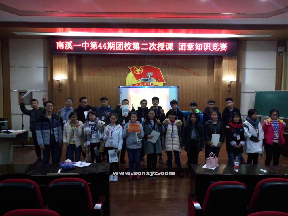 (吳嬌嬌)1月5日,南溪一中在學(xué)術(shù)廳舉行了第44期團(tuán)校的第二次集體學(xué)習(xí)。校團(tuán)委委員以知識(shí)競賽的方式帶領(lǐng)團(tuán)校學(xué)員一起學(xué)習(xí)團(tuán)章的相關(guān)知識(shí)。校團(tuán)委委員以生動(dòng)有趣的語言介紹了團(tuán)章相關(guān)知識(shí),并對學(xué)員學(xué)習(xí)團(tuán)章知識(shí)提出了明確要求。接著,進(jìn)行了“團(tuán)章知識(shí)競賽”,各團(tuán)校學(xué)員在必答題和搶答題環(huán)節(jié)積極踴躍參與,表現(xiàn)優(yōu)異。最后參與答題的優(yōu)秀學(xué)員獲得表彰并被授予獎(jiǎng)狀,團(tuán)校第二次學(xué)習(xí)圓滿結(jié)束。
