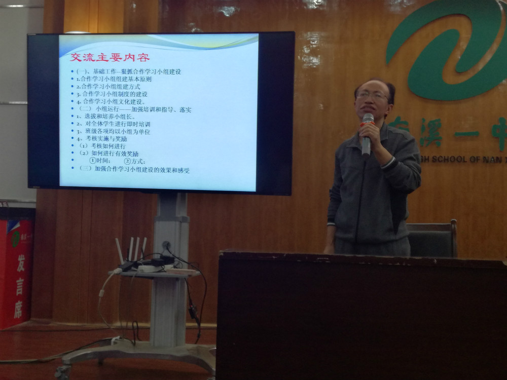 省級(jí)骨干教師、市教學(xué)名師高銀物老師首先對(duì)班級(jí)學(xué)生學(xué)習(xí)小組建設(shè)管理經(jīng)驗(yàn)交流。最后年級(jí)對(duì)班級(jí)管理工作作出要求:進(jìn)一步規(guī)范高一學(xué)生的日常行為規(guī)范,更深層次地加強(qiáng)學(xué)生管理,安全工作應(yīng)長(zhǎng)抓不懈,保證學(xué)生的安全工作有效地進(jìn)行;同時(shí),要求班主任耐心細(xì)致地與各家長(zhǎng)真誠(chéng)溝通,促進(jìn)家校的良性發(fā)展等等。