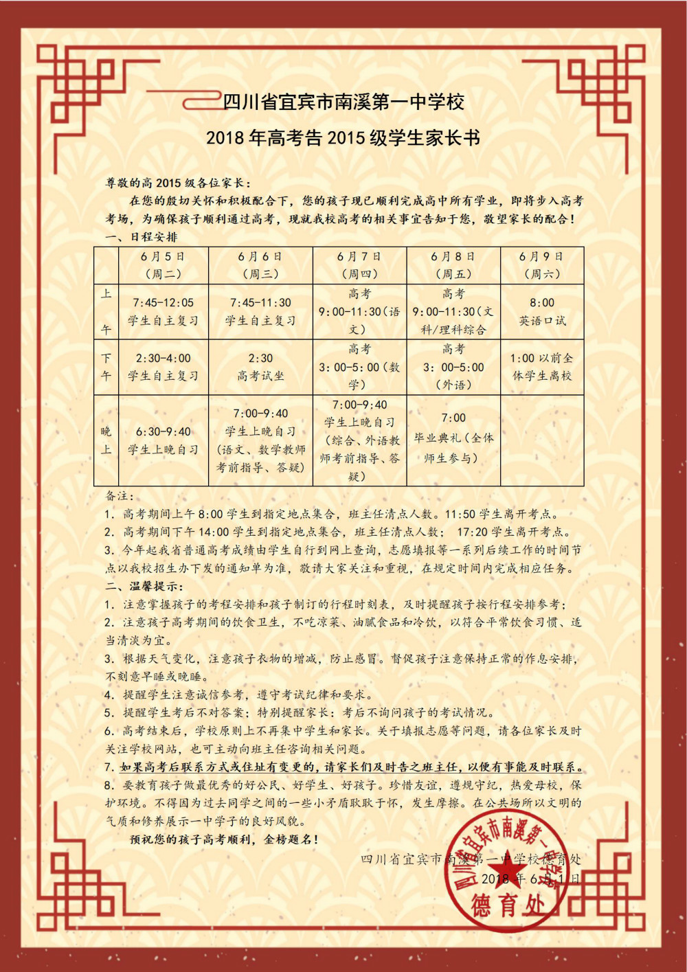 2018年高考告高2015級(jí)學(xué)生家長書