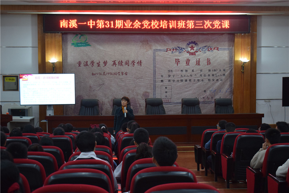 (趙楠)10月30日,南溪一中第31期黨校在奎峰講堂舉行“追尋偉大民族精神”專題黨課。