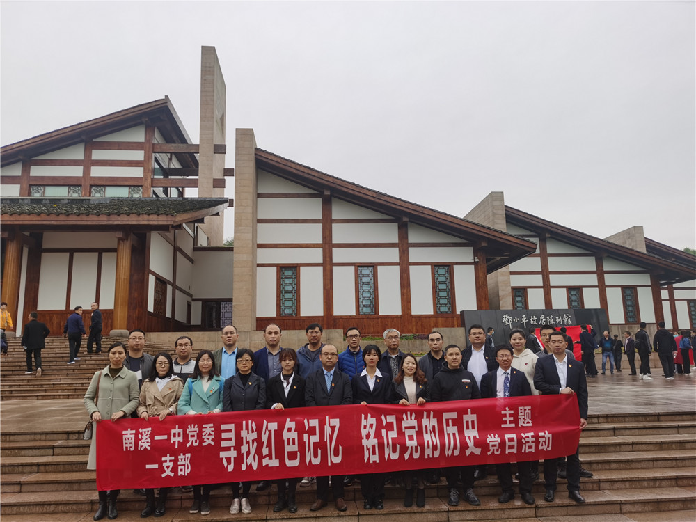 (彭懿、蘇繼華)為推動黨史學(xué)習(xí)教育深入開展,激勵廣大黨員同志繼承和發(fā)揚黨的優(yōu)良傳統(tǒng),牢記初心使命。4月18日,南溪一中黨委一、二支部聯(lián)合開展“尋找紅色記憶,銘記黨的歷史”主題黨日活動,走進紅色教育基地——鄧小平故里,追尋偉人足跡,緬懷偉人精神,傳承紅色基因。
