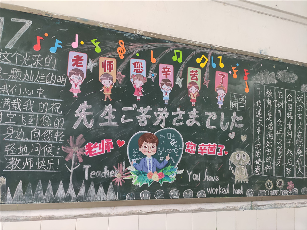 (曾丞君)在第37個(gè)教師節(jié)來(lái)臨之際,南溪一中高2021級(jí)組織各班舉辦了以“慶祝教師節(jié)”為主題黑板報(bào)創(chuàng)作活動(dòng)。同學(xué)們懷著對(duì)老師的崇高敬意,發(fā)揮聰明才智,各顯所能,辦出了讓老師們感動(dòng)的黑板報(bào)。一幅幅板報(bào)排版布局靈活,繪畫(huà)精美,畫(huà)面生動(dòng)活潑,字里行間無(wú)不透露出對(duì)老師的崇敬與愛(ài)戴。
