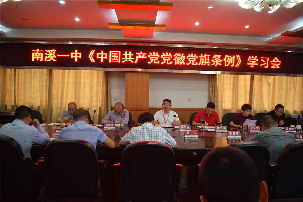 (楊波)8月27日,南溪一中在勤政樓三樓會議室召開了《中國共產黨組織工作條例》和《中國共產黨黨徽黨旗條例》學習會,全體行政人員和支部書記參會。