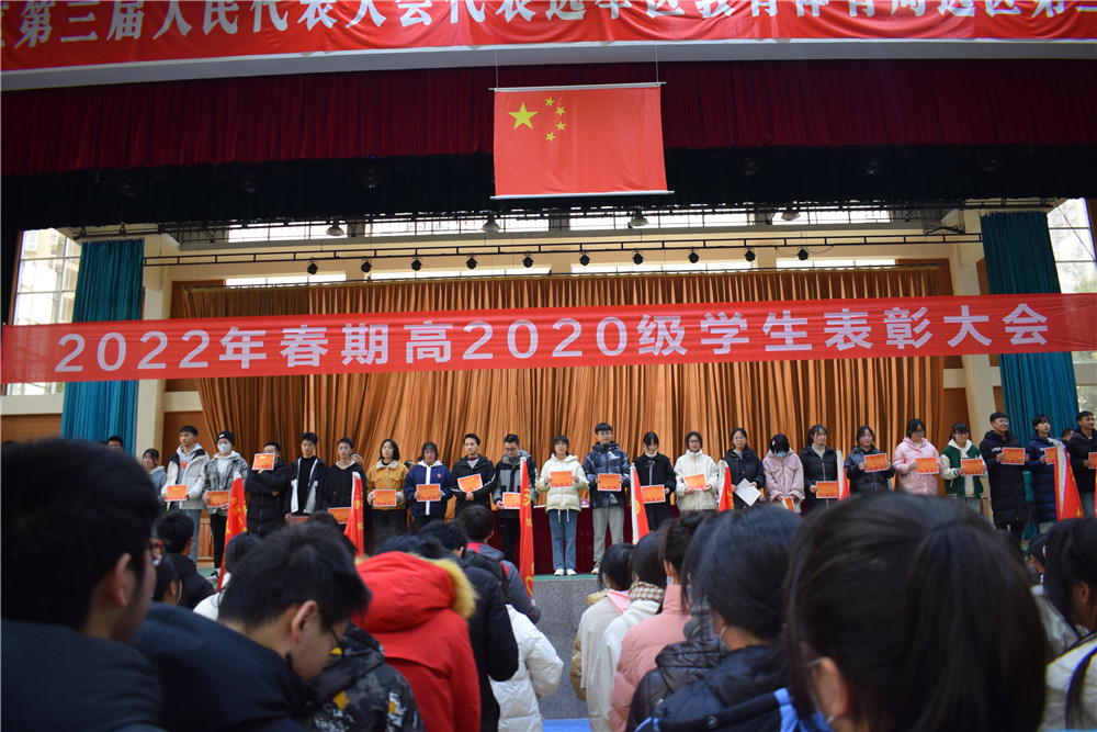 (曾薪蓉)為表彰優(yōu)秀,激勵(lì)先進(jìn),營(yíng)造濃厚的學(xué)習(xí)氛圍,2月24日下午,南溪一中高2020級(jí)全體師生齊聚學(xué)校體育館召開(kāi)了2022年春期高2020級(jí)學(xué)生表彰大會(huì)。