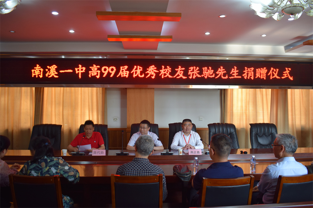 (曾薪蓉)5月12日,南溪一中在勤政樓大會(huì)議室舉行了高99屆優(yōu)秀校友張馳先生捐贈(zèng)儀式。南溪一中高99屆優(yōu)秀校友張馳先生、南溪一中黨委書記、校長高正鑫以及張馳先生的恩師和部分同學(xué)參與本次捐贈(zèng)儀式,捐贈(zèng)儀式由南溪一中黨委委員、副校長陳代勛主持。