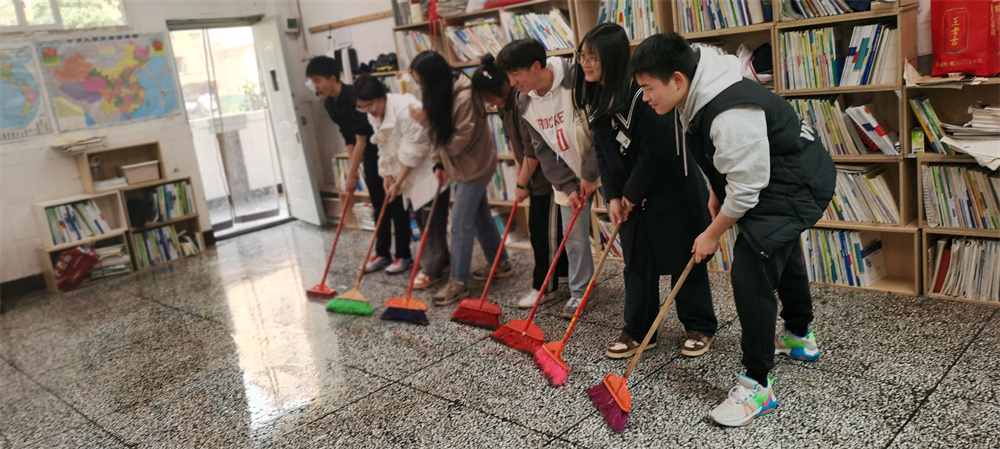 校園里,隨處可見手持勞動(dòng)工具投身于勞動(dòng)的教職工和學(xué)生。樓道口是拿著鐵叉和掃帚、認(rèn)真清掃落葉的同學(xué);教室里,有的同學(xué)拿起拖把刷洗地面,有的在擦拭桌面和窗臺(tái),整個(gè)過程有條不紊,井然有序。同學(xué)們?cè)诮ㄔO(shè)美麗校園的同時(shí),還體會(huì)到了自我價(jià)值感,收獲了對(duì)勞動(dòng)意義的理解。