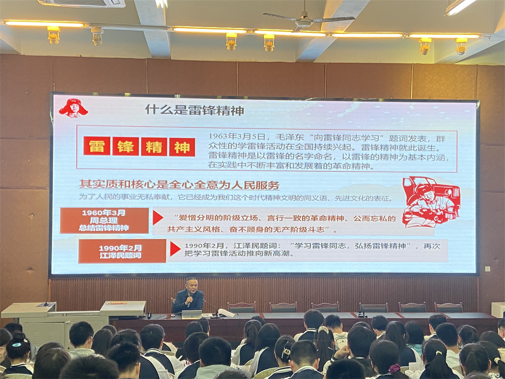 蒙校長從雷鋒人生經(jīng)歷、雷鋒動(dòng)人事跡、雷鋒日記、雷鋒名言等方面對(duì)雷鋒精神作了全面細(xì)致的講解,再現(xiàn)了雷鋒同志平凡而又偉大的一生。這次授課讓同學(xué)們深刻了解雷鋒精神的深刻內(nèi)涵和時(shí)代特征,相信大家必將不負(fù)蒙校長的殷切希望,在今后的學(xué)習(xí)生活中用實(shí)際行動(dòng)去發(fā)揚(yáng)雷鋒高尚的品格,展現(xiàn)雷鋒可貴的精神。