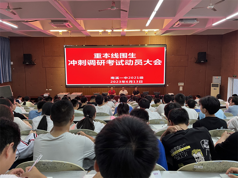 (謝雅琴)新征程,新夢(mèng)想,新輝煌。為激發(fā)學(xué)生學(xué)習(xí)激情,用科學(xué)的方法沖刺調(diào)研考試,6月13日,南溪一中在中和堂召開(kāi)2021級(jí)重本線圍生沖刺調(diào)研考試動(dòng)員大會(huì),年級(jí)領(lǐng)導(dǎo)、各班班主任及重本線圍生參加會(huì)議。