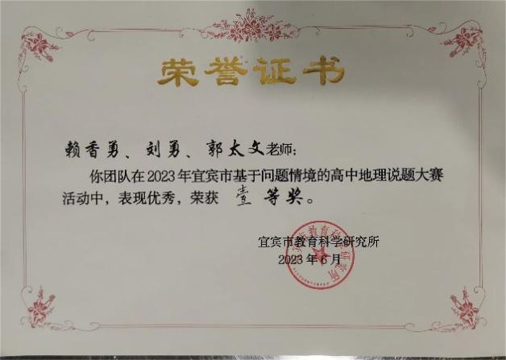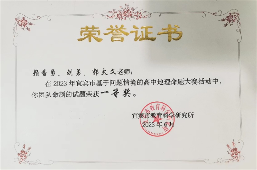 (郭太文) 2023年3月,宜賓市教科所發(fā)布了關(guān)于開展2023年基于問題情境的高中地理命題、說題大賽的通知,南溪一中接到這一比賽通知后,迅速成立了以賴香勇老師牽頭,劉勇、郭太文為組員的團(tuán)隊(duì)組合。