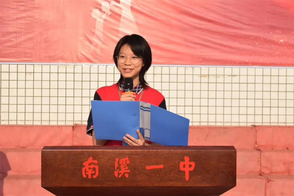 全體肅立,奏唱國(guó)歌,全體師生齊聲高唱國(guó)歌,嘹亮的歌聲響徹南溪一中校園。