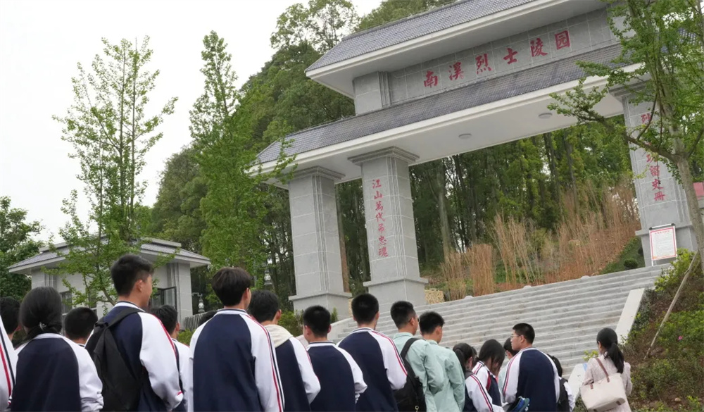 (邱夢(mèng)婷)祥云垂敬意,微風(fēng)蕩哀思。為深入貫徹落實(shí)習(xí)近平總書記關(guān)于烈士褒揚(yáng)工作重要指示精神,弘揚(yáng)愛國主義精神,傳承紅色基因,號(hào)召青年學(xué)生時(shí)刻銘記烈士們?yōu)榻夥艊液兔褡宥幌奚拇鬅o畏英勇事跡,向烈士們學(xué)習(xí)頑強(qiáng)拼搏、艱苦奮斗的精神,4月12日,南溪一中校團(tuán)委組織第五十二期團(tuán)校學(xué)員及高2022級(jí)1、2班全體學(xué)生參與“緬懷革命先烈 傳承紅色基因”清明節(jié)祭掃烈士陵園活動(dòng)。