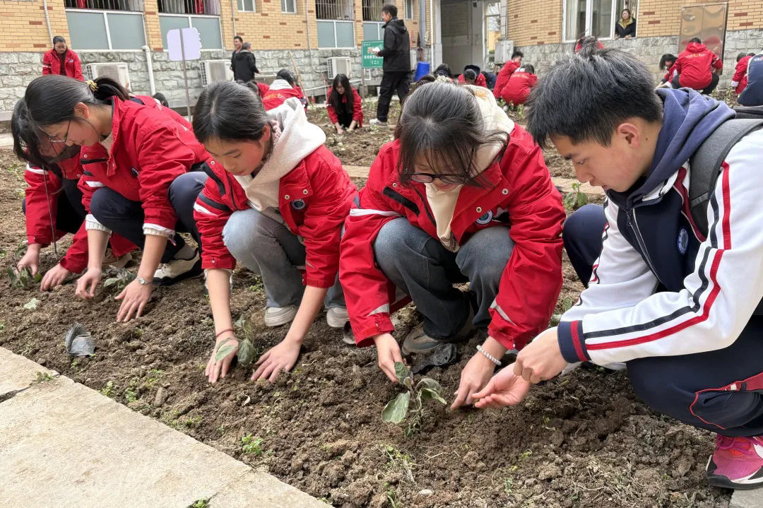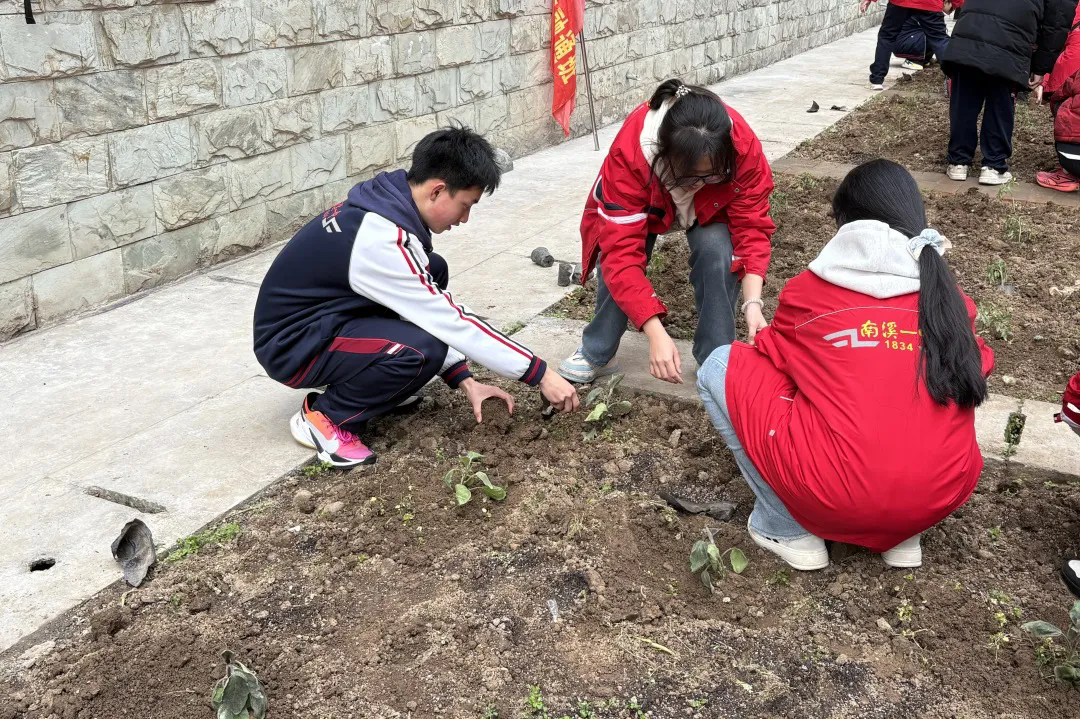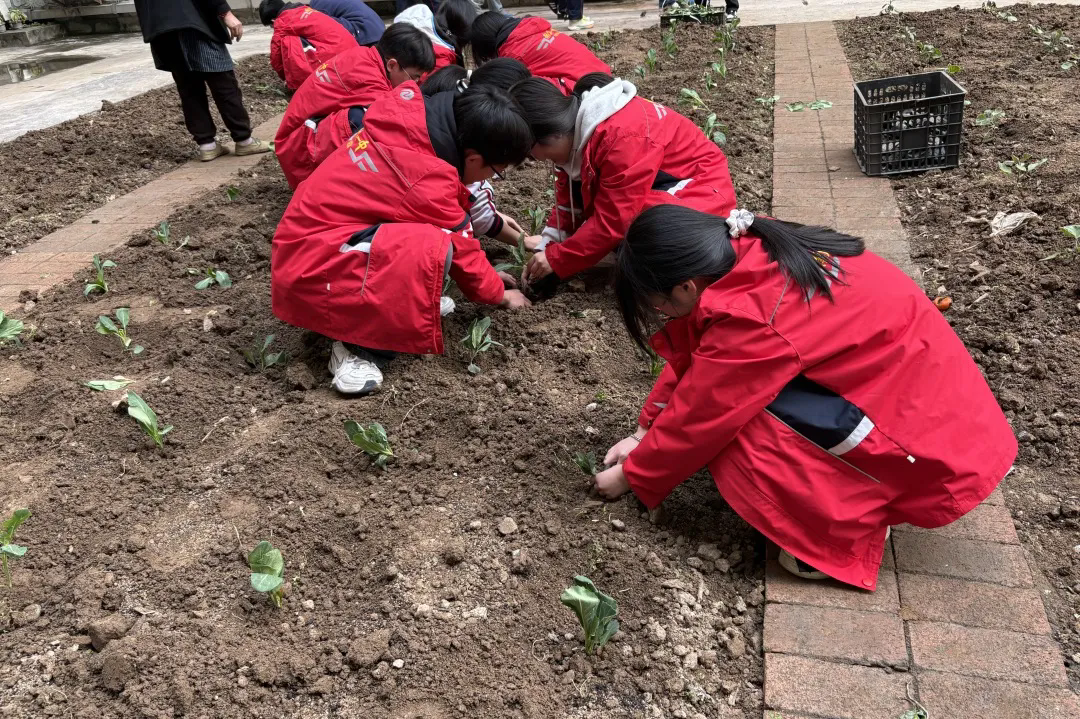 活動中,同學們不僅掌握了翻土、移栽、施肥等勞動技能,更將課本理論轉(zhuǎn)化為實踐經(jīng)驗。一株幼苗的茁壯成長,離不開陽光雨露的滋養(yǎng),更需團隊協(xié)作的精心呵護。同學們在分工合作中領悟責任擔當,勞動教育的“潤物無聲”悄然浸潤心田。