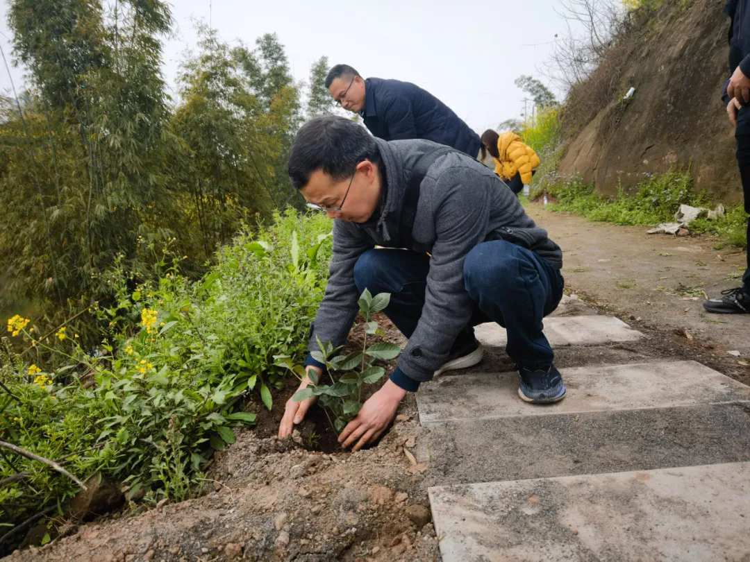 黨課結(jié)束后,全體黨員和村民代表共同參與了植樹(shù)活動(dòng)。此次植樹(shù)選擇了具有經(jīng)濟(jì)價(jià)值和生態(tài)效益的梔子花樹(shù)苗,寓意著鄉(xiāng)村振興的美好未來(lái)。