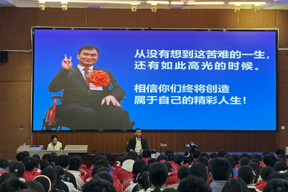 王龍奎,這位來自宜賓市江安縣江安鎮(zhèn)紅巖村的50歲黨員,有著令人敬佩的人生經(jīng)歷。20歲時(shí),一場(chǎng)意外讓他高位截癱,生活陷入絕境。癱瘓臥床17年后終于“重新站了起來”。38歲的他重返高中校園,憑借頑強(qiáng)的毅力和奮斗考入大學(xué)、自主創(chuàng)業(yè),榮獲“全國(guó)自強(qiáng)模范”稱號(hào)。他的故事,是一部與命運(yùn)頑強(qiáng)抗?fàn)帯⒉粩鄷鴮戄x煌的傳奇;他的經(jīng)歷,讓同學(xué)們看到,即便身處絕境,也能憑借頑強(qiáng)意志改寫命運(yùn)!爸С治蚁蚯白叩氖菍(duì)生活的熱愛和對(duì)未來的希望,我不想被命運(yùn)束縛,我要靠自己的努力去創(chuàng)造價(jià)值!蓖觚埧壬錆M力量的話語讓同學(xué)們深受觸動(dòng),現(xiàn)場(chǎng)響起熱烈的掌聲。