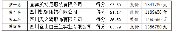 第一中標(biāo)人:宜賓英特尼服裝有限公司,報價:1341780元。